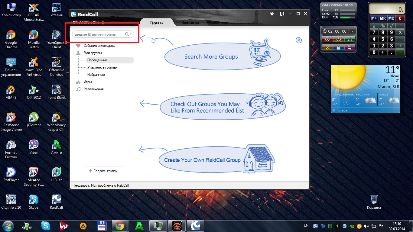 | Дорогие сокланы! Т.к. наш канал в ТС был удалён и ввиду простоты использования связи для похода на КВ ,я принял решение создать канал клана на сервере Raidcall. Вот ID нашего канала: 8474569.